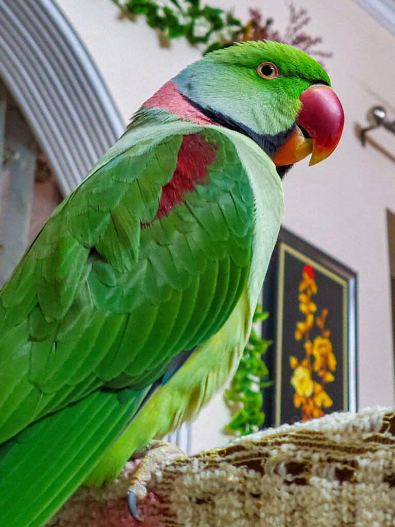 But the story changes here, in my laws, we have a parrot named mithu. Earlier I could not have him sit on my shoulder during my first month in the house. On the contrary, mithu feel safe with humans. One day I picked a sweet dish quite famous in India named “laddoo”. It is a yellow ball like thing. He immediately came to sit on my shoulder. And that’s how our story began.