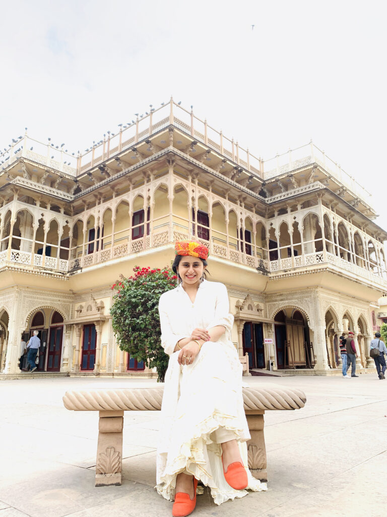 The weather in Jaipur is extreme hot but we were travelling in winters, so I chose a Luckhnowi suit as my outfit.